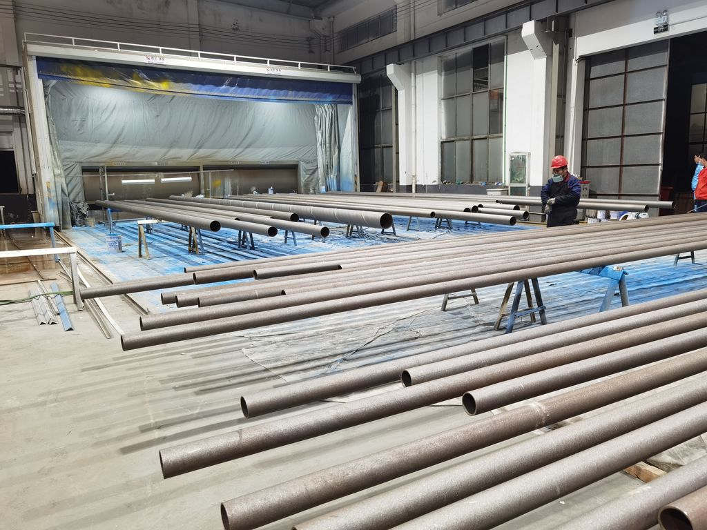 面漆:氟碳漆或者丙烯酸涂料,讓鋼管既耐得住風(fēng)吹日曬,又好看得像明星一樣。通過(guò)高壓無(wú)氣噴涂,把漆均勻地噴在鋼管上。